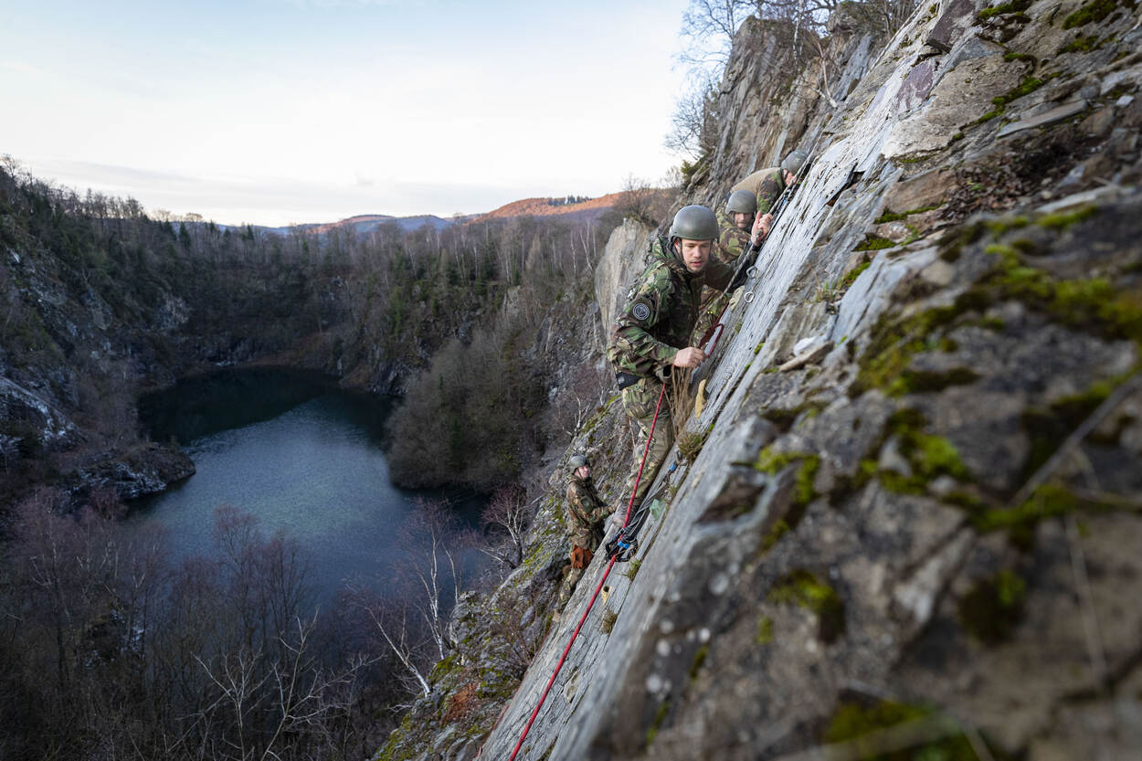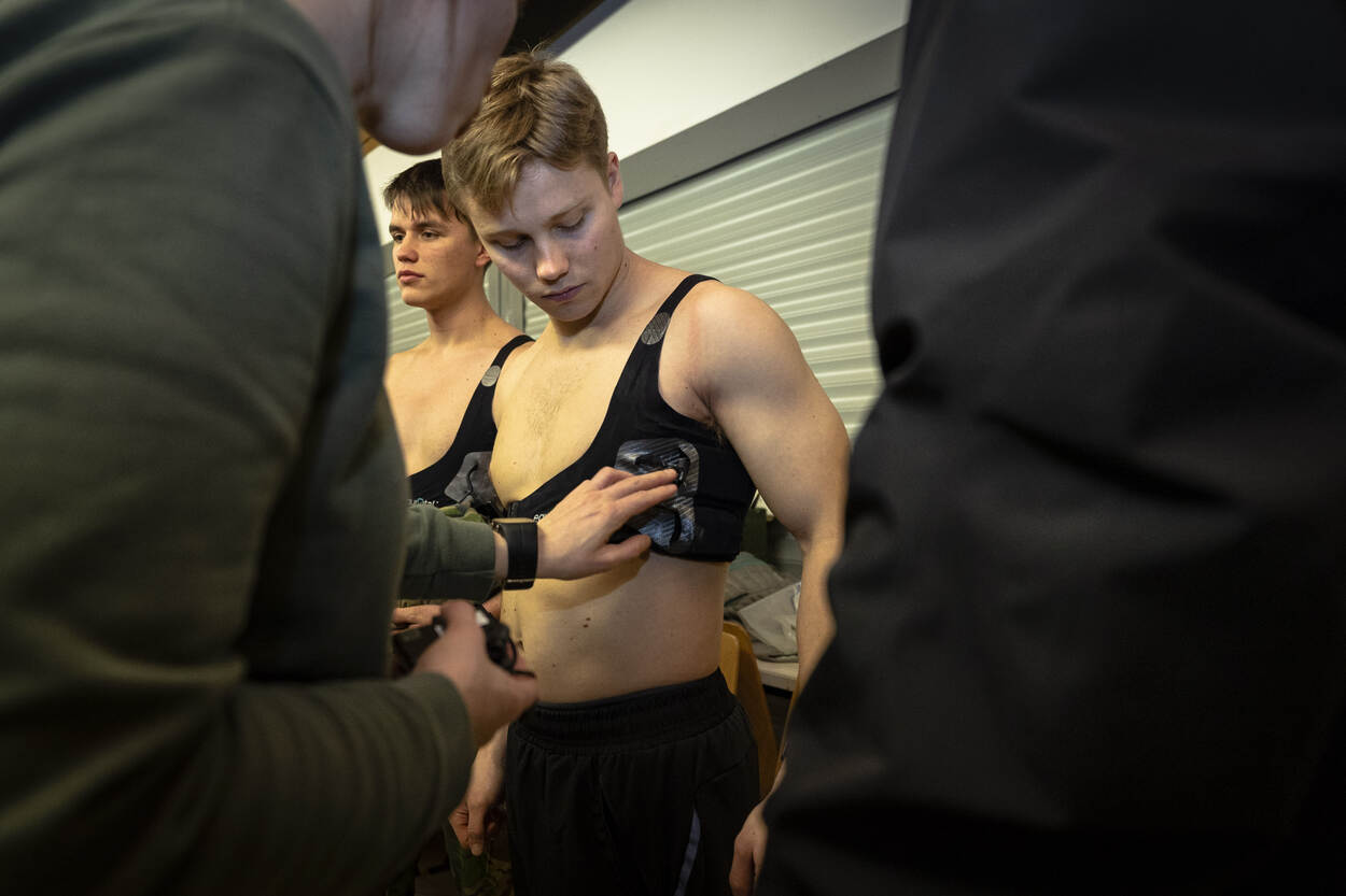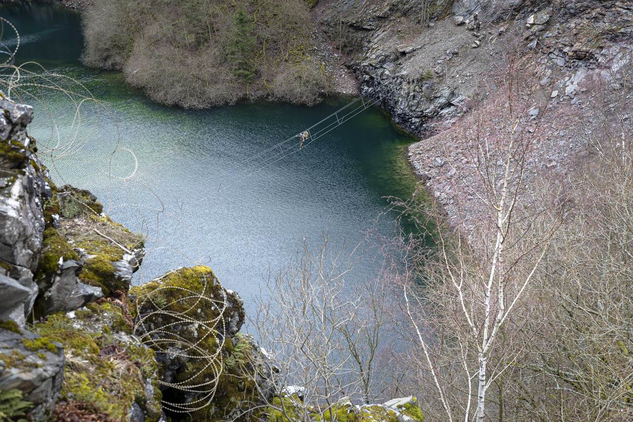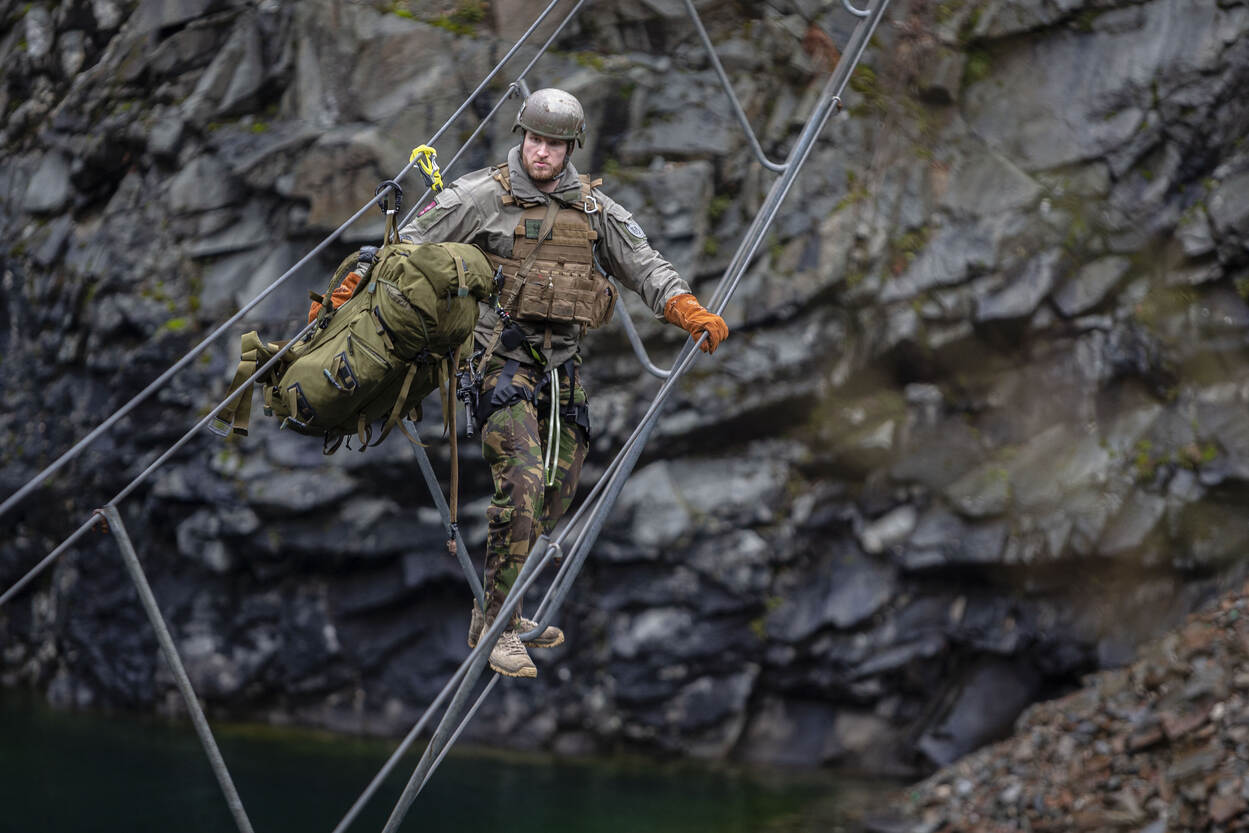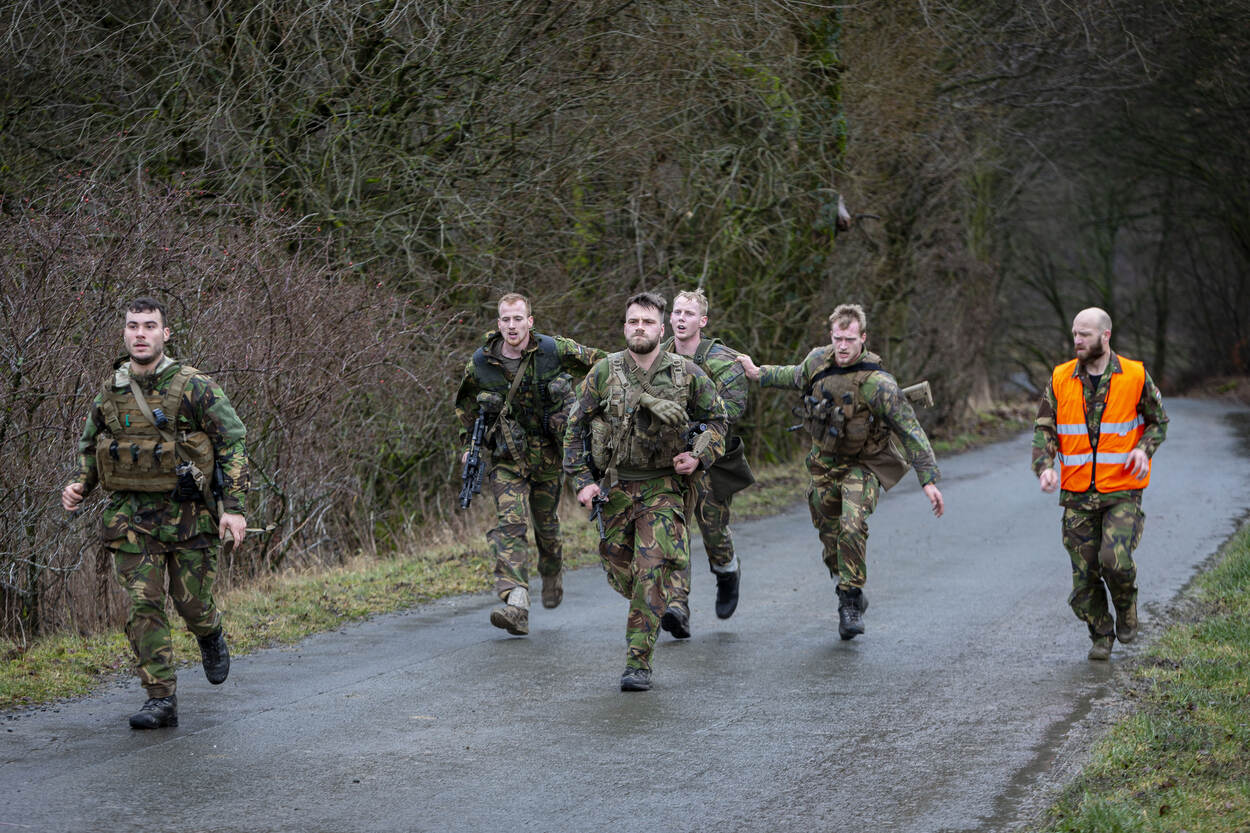 “Lekker man! Bijna! Bijna boven!” Een soldaat wordt meegesleurd door 2 maten tijdens de laatste 300 meter bergop. Even ervoor is de boomstam die ze binnen 8 minuten 2 kilometer moesten meesjouwen door 2 anderen van de groep binnengebracht. Ze zijn doorweekt van het zweet en zitten onder de modder. Tijd om uit te hijgen is er niet. Meteen mogen ze verder naar een voormalige steengroeve waar een nieuwe serie opdrachten wacht.