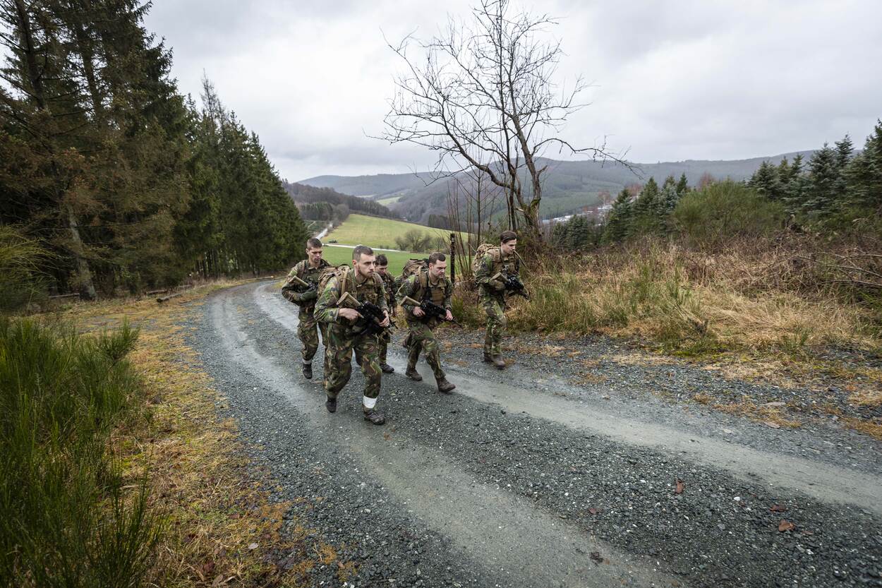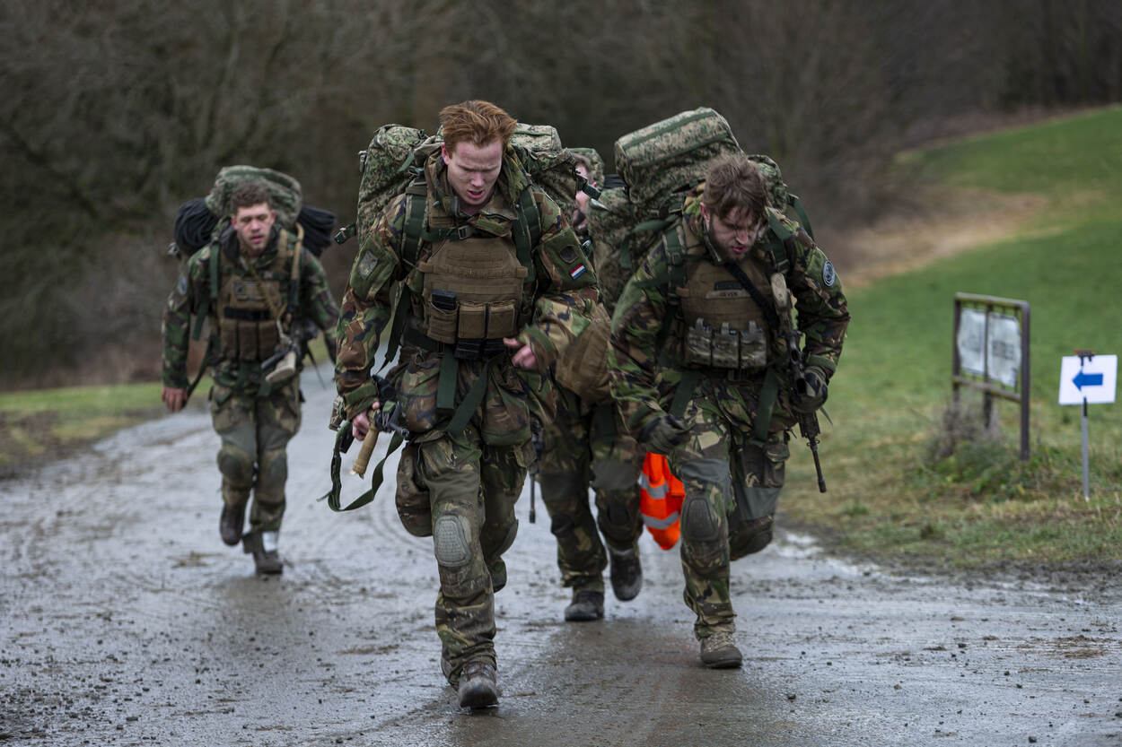 “Links, 2, 3, 4!” Over een landweggetje met beboste heuvels in de achtergrond verschijnt een nieuwe groep. Het vele gewicht dat telkens mee moet, begint zijn tol te eisen. Na 2 dagen lopen de mannen deze geforceerde mars van 8 kilometer minder soepel. De zware fysieke prikkels moeten ertoe leiden dat de individuele militair zichzelf mentaal tegen komt. En daar moet de groep ook iets mee. Tijden halen is deze dagen niet de prioriteit. Het gaat om het leren kennen van groepsgenoten. Want als je die kent heb je volgens soldaat-1 Issam iets voor ze over.