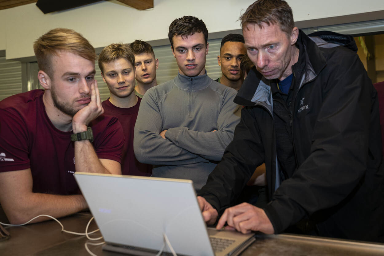 De groep staart aan het eind van de dag geconcentreerd naar een laptop met grafieken en cijfers. De hartslaggrafiek schiet even omhoog. “Daar namen we de shortcut de berg op”, lachen ze. De groep van Issam klom, marste en sliep met speciale meetapparatuur van de afdeling Trainingsgeneeskunde Trainingsfysiologie (TGTF) op de borst om inzicht te krijgen in hartslag, calorieverbruik en slaap. Want wat je voelt tijdens een speedmars hoeft niet te corresponderen met de feiten. “Als je je slecht voelt maar bij jezelf ziet dat je hartslag prima is en snel herstelt, weet je na een zware dag: morgen kan ik het gewoon weer”, concludeert Issam.