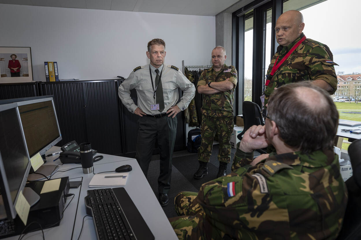 Dat is een breed pallet aan diensten. “We denken hier niet alleen aan infanteristen en voertuigen. We kunnen medisch transport en schoonmaaktaken uitvoeren, voedsel uitdelen, planners inzetten. De landmacht heeft heel veel te bieden”, benadrukt Van Dalen. De feiten en cijfers over de mogelijkheden worden hier in gebouw K9 verzameld. “De informatiebehoefte is op dit moment heel groot”, weet chef-staf luitenant-kolonel Erik van Rijswijk. “Elke ochtend en middag houden we elkaar op de hoogte en krijgen we input vanuit de eenheden in het land zodat we een update naar C-LAS kunnen sturen. Hij moet uiteindelijk beslissingen maken over de inzet.”