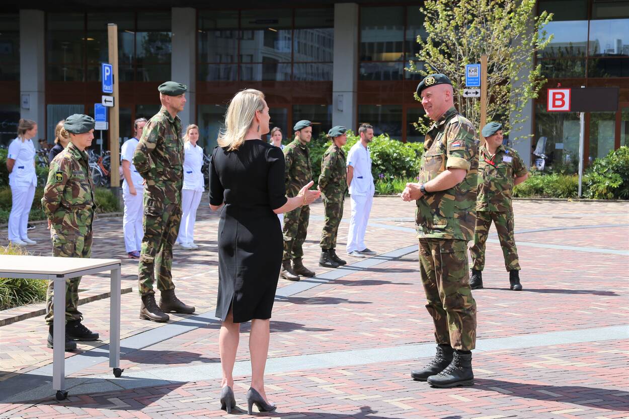 “Hoe ironisch is het, dat in het jaar waarin we dit uitgebreid zouden moeten vieren, deze vrijheid op onverwachte wijze onder druk staat”, aldus Wijnen, die zelf het Erasmus MC in Rotterdam bezocht. “U zet zich dag en nacht in voor onze gezondheid en daarmee voor onze veiligheid en vrijheid”, richtte Wijnen zich tot het zorgpersoneel. “U verdient diep respect van ons allemaal. Ik ben dan ook blij dat Defensie collega’s waar nodig, u kunnen ondersteunen in deze strijd tegen het virus”.
