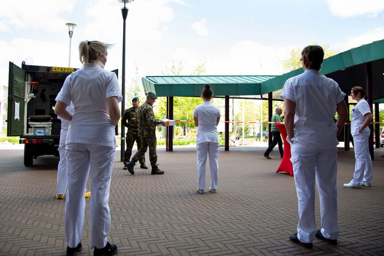 Luitenant-generaal Martin Wijnen ging langs bij het Erasmus MC in Rotterdam. Naast verzorgend personeel waren hier landmachtplanners actief die vanuit het Landelijk Centrum Patiënten Spreiding coronapatiënten over intensive cares in Nederland verspreidden.