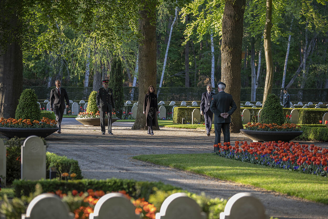 Op het militair ereveld Grebbeberg werden kransen neergelegd door PC-LAS, generaal-majoor Rob Jeulink, staatssecretaris van Defensie Barbara Visser, burgemeester van de gemeente Rhenen Hans van der Pas en generaal buiten dienst Tom Middendorp, die laatste vanuit zijn functie bij de Oorlogsgravenstichting. (Foto: Heidie Mulder-Stoffer)
