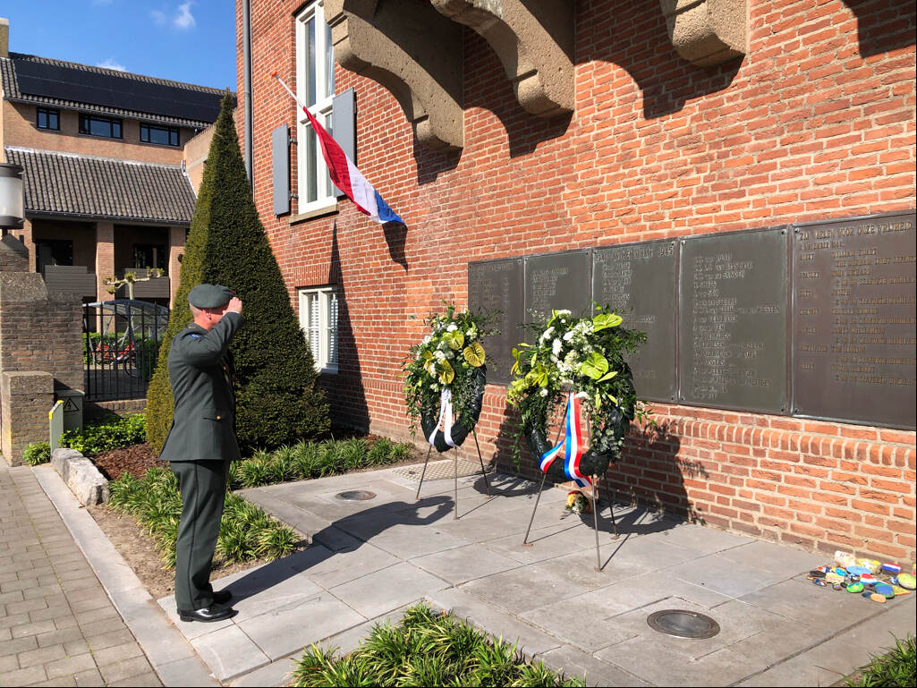 Voor de korpsadjudant van het Defensie Grondgebonden Luchtverdedigingscommando (DGLC) Jakob Tonnis was het een hele vreemde 4 mei. Al 15 jaar reist hij af naar het Park Leeuwenbergh in Leidschendam om namens de krijgsmacht een krans te leggen bij het monument van de 13e Batterij Luchtdoelartillerie. Hier vond een van de eerste bombardementen van de Tweede Wereldoorlog op Nederlands grondgebied plaats. Daarnaast waren er felle gevechten tussen Nederlandse luchtdoelartilleristen en Duitse parachutisten. Dit jaar zou de 80e herdenking zijn. “In juni 1940 was er al een ceremonie, een maand na de oorlogsdagen in mei,” weet Tonnis. “Dit jaar zou een militaire herdenking zijn, met vaandel en een grote afvaardiging. Dat kan niet doorgaan. Het is met name sneu voor de nabestaanden van de overledenen. Nu leggen wij een krans, houden een minuut stilte en vertrekken weer.” De tweede kranslegging voor Tonnis was in Westerbeek, dichtbij de thuisbasis van het DGLC. Het is de laatste keer dat Tonnis dit in uniform doet. Volgend jaar zwaait hij af.