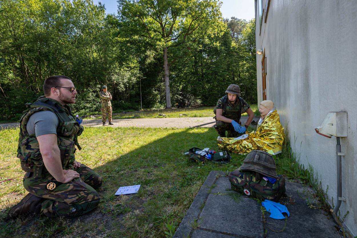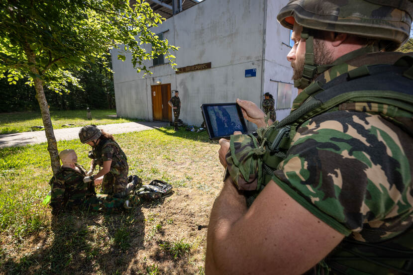 “Aan de hand van een leertakenboek maakte je opdrachten en kon je video’s van eerdere cursisten bekijken”, vervolgt de marinier. “Voor vragen was er een instructeur in de klas. Je filmde je eigen handelingen die je daarna kon uploaden in de GPAL-app. De instructeur bekeek die en kon direct feedback geven. Door middel van 5 simulaties ging je langs het hele <C>ABCDE-protocol, net zoals met ZHKH (zelfhulp, kameradenhulp), maar wij gaan er dieper op in. In het begin was het opnemen op film wennen, ik ben natuurlijk geen vlogger. Maar het is in ieder geval anders dan klassikaal luisteren naar een docent en aantekeningen maken. Ik denk dat de stof beter blijft hangen.”