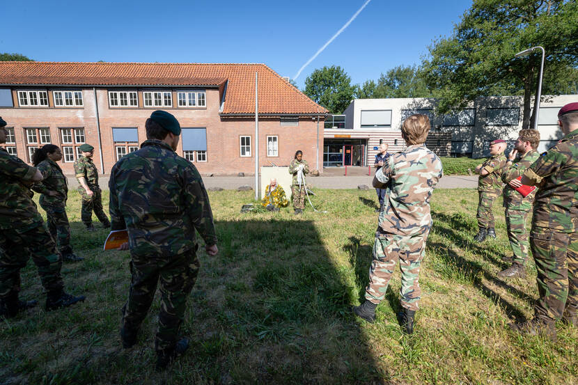 Marinier der eerste klasse Job moet lachend toegeven dat deze landmachtopleiding heel goed in elkaar zit. “Dit is mijn eerste opleiding in de richting van Medic. Het leek me een toffe cursus. Je leert hoe het lichaam werkt en hoe je verwondingen kan verzorgen. De aanpak in Hilversum was wel anders dan normaal, mede natuurlijk door het COVID-gebeuren. Dat werd duidelijk aan het begin uitgelegd door de instructeurs. Doordat we afstand moesten houden ben je heel zelfstandig bezig. Met 4 man zaten we in een lokaal waar we elk een eigen hoek met een aantal poppen en een iPad op standaard hadden.”