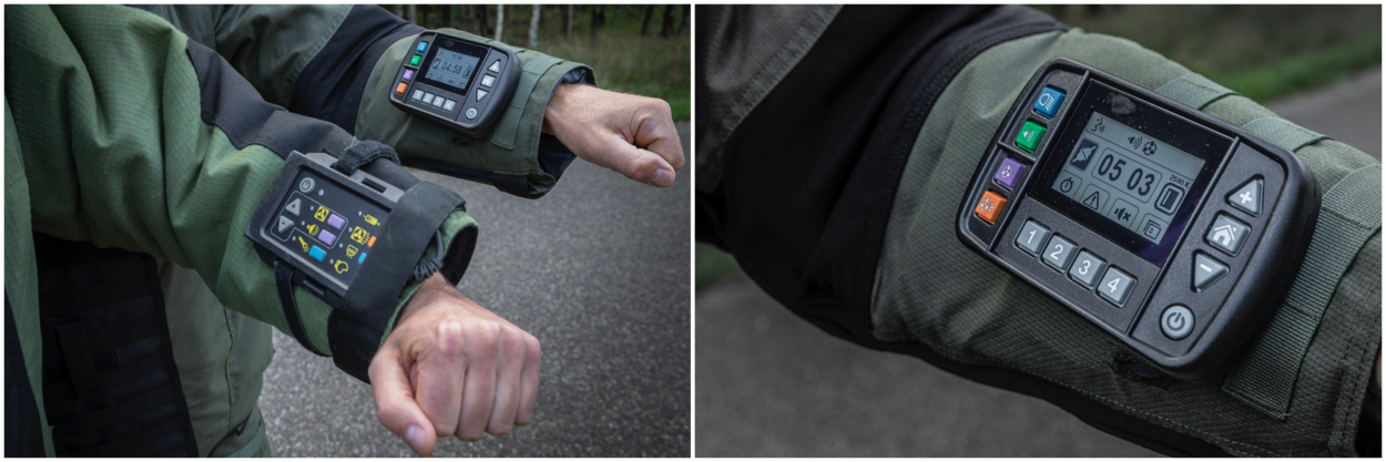 Elkaar goed verstaan is wel zo handig als je in het heetst van de strijd explosieven onschadelijk maakt. In het oude pak kon de ruimer zijn collega’s meestal wel horen maar was hij zelf moeilijk te verstaan. ‘Model 10’ heeft daarom een krachtig speakertje op de bovenarm, waardoor de collega’s elkaar op zeker 50 meter afstand nog kunnen verstaan. “Je kunt bovendien constant met elkaar praten zonder eerst een knopje in te hoeven drukken.” Het zendvermogen is zó laag, dat ze geen invloed hebben op IED’s.