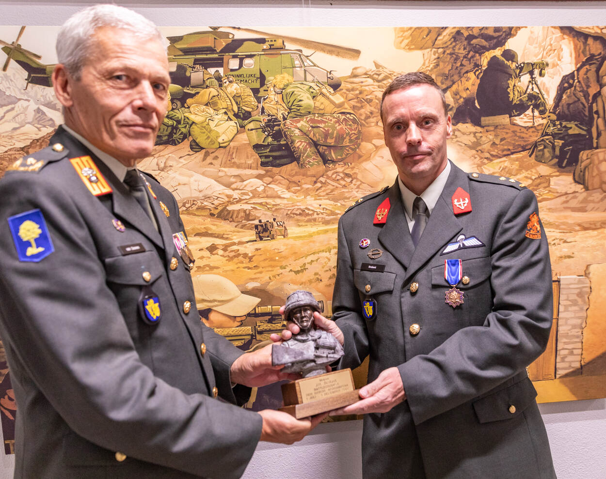 Het Ereteken voor Verdienste in Brons is een ministeriële onderscheiding die wordt toegekend aan militairen die zich op uitzonderlijke wijze verdienstelijk hebben gemaakt. De Sculptuur Operationeel Optreden wordt toegekend aan een militair van de Koninklijke Landmacht die zich tijdens operationeel optreden door buitengewone toewijding en loffelijk optreden heeft onderscheiden.