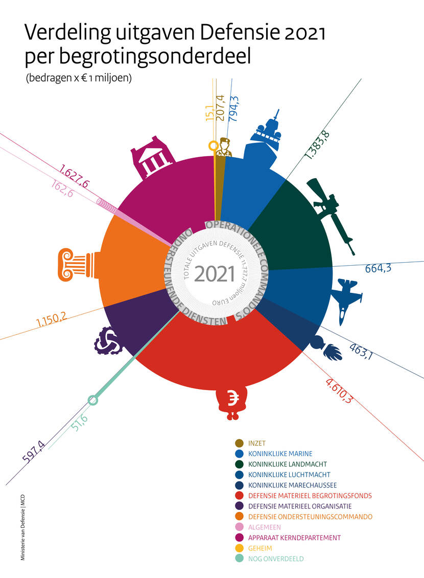 Defensie dient dit jaar voor het eerst een materieelbegrotingsfonds in, met voor de komende 15 jaar zo’n € 66 miljard, waarvan € 4,6 miljard komend jaar wordt gebruikt. Dankzij het fonds kan Defensie de uitgaven voor de langere termijn beter in kaart brengen. Dat geldt ook voor de samenhang van het beheer en onderhoud van de investeringen.