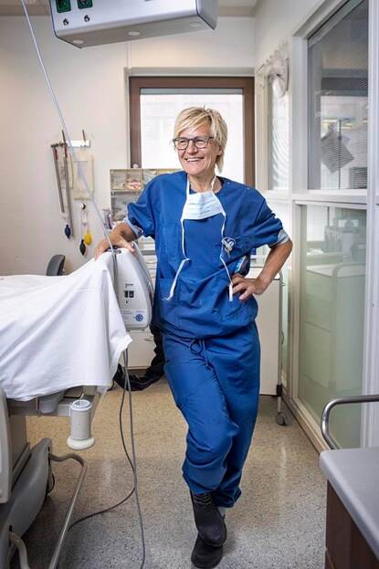Ik greep de kans aan omdat het een mooie uitdaging was en is, tot aan mijn FLO. Aan de andere kant vormde ook COVID een belangrijke factor in de switch. Ja, ik vind het werk van IC-verpleegkundige nog steeds erg leuk. Ik sluit ook niet uit dat als zich een zwart scenario ontvouwt, ik toch weer bijspring. Maar ik heb de laatste 18 jaar op de spoedeisende hulp en de laatste jaren vooral op de IC gewerkt. Voor nu heb ik dit werk lang genoeg gedaan. Voor mij is dit boek dicht, het is klaar.”
