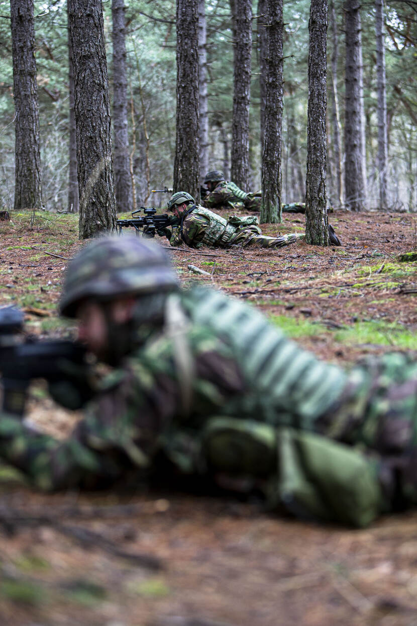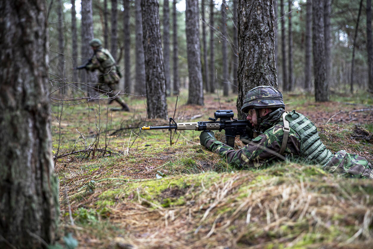 Terug naar de Oirschotse Heide. Met meegebrachte snacks in de hand bespreken de militairen de acties. “Contact? Meteen door de hoeven!”, klinkt het. Even verderop: “Maak je profiel zo klein mogelijk, anders gaan die patronen alsnog door je heen.”