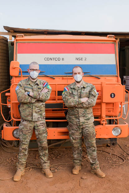 Al zaten Robin en Bram in hetzelfde opwerktraject en reisden ze samen naar Mali, ze werken in andere shifts. Robin is dan dus ook de enige Nederlander in een verder compleet Duitse Mannschaft. En dat was aan het begin zeker even wennen: “De gewoontes, procedures en omgangsnormen bij de collega’s van de Bundeswehr zijn anders dan bij ons. Wat dat betreft bemerk ik hier een wezenlijk verschil tussen onze krijgsmachten. Niet dat het storend is trouwens, maar het valt wel op. Formeel gedoe, zeg maar. Gelukkig wordt het ons als Nederlanders snel vergeven dat we niet alle ins & outs kennen en is sowieso de sfeer binnen ons peloton heel erg goed.”
