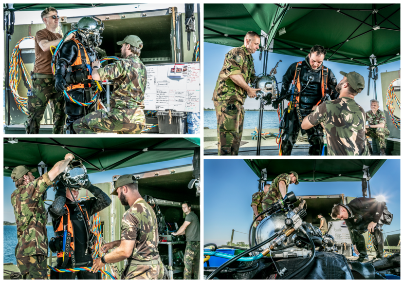 Dat laatste gaat dan zo’n beetje als enige item niet om de veiligheid van de duikers, want daar draait het om aan boord. Sergeant Roel, sinds kort plaatsvervangend commandant van de duikgroep: “We hebben 3 functies voor onze werkzaamheden: duikleiders, duikers en dekpersoneel. We wisselen onderling regelmatig, zodat iedereen zijn vaardigheden kan bijhouden.” Het is zijn ‘vuurdoop’ bij een oefening van het duikerpeloton.