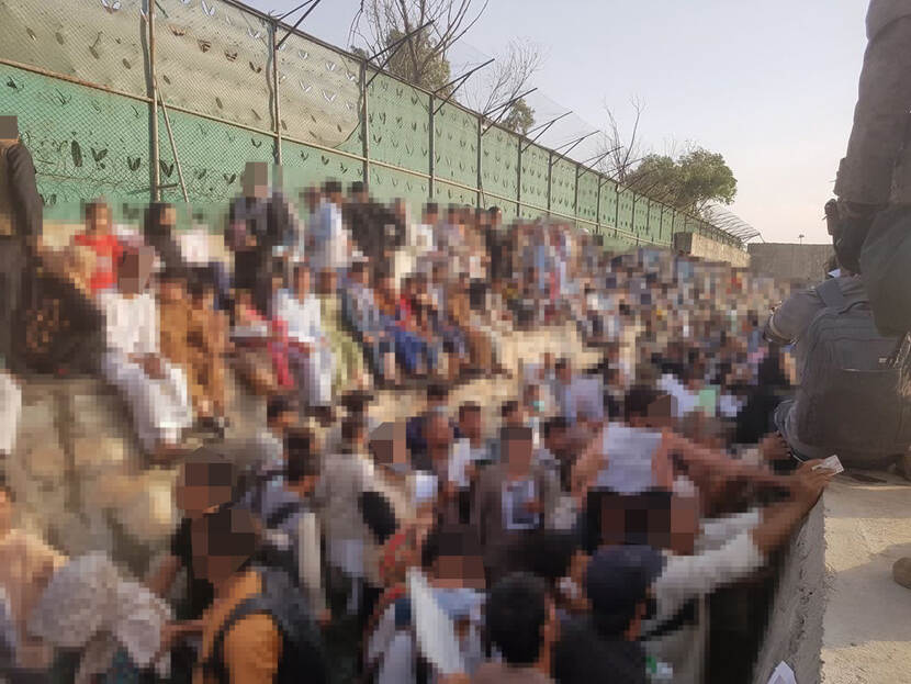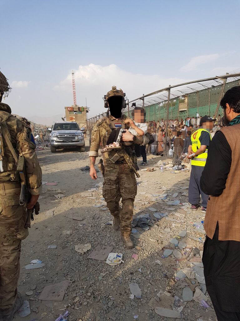 Op het vliegveld richten de Nederlanders een compound in, maken een beveiligingsplan en zetten de comms met Pakistan op, de logistieke hub vanwaar de operatie wordt geleid door het Nederlandse contingent aldaar. Die eerste nacht verkennen de commando’s het hele vliegveld. Spreken met coalitiepartners ter plaatse. Bij de North en East Gate staan operators bij de menigte. “Wat we zagen was inhumaan. Kinderen die werden doorgegeven. Mensen die werden verdrukt of in hun eigen poep en plas stonden. Zowel Amerikanen als Taliban vuurden schoten af om de meute te beheersen. Het was een en al hysterie en wanhoop.”