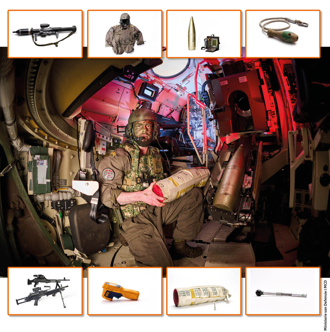 Iedereen heeft zijn eigen uitrusting. Enig idee wat collega’s met zich meezeulen? Welke ‘gereedschappen’ voor hen onmisbaar zijn? Maandelijks vertelt een landmachter over de essentiële benodigdheden waarmee hij zijn opdrachten uitvoert. Ditmaal korporaal Jordy, plaatsvervangend stukscommandant van de Pantserhouwitser 2000NL.