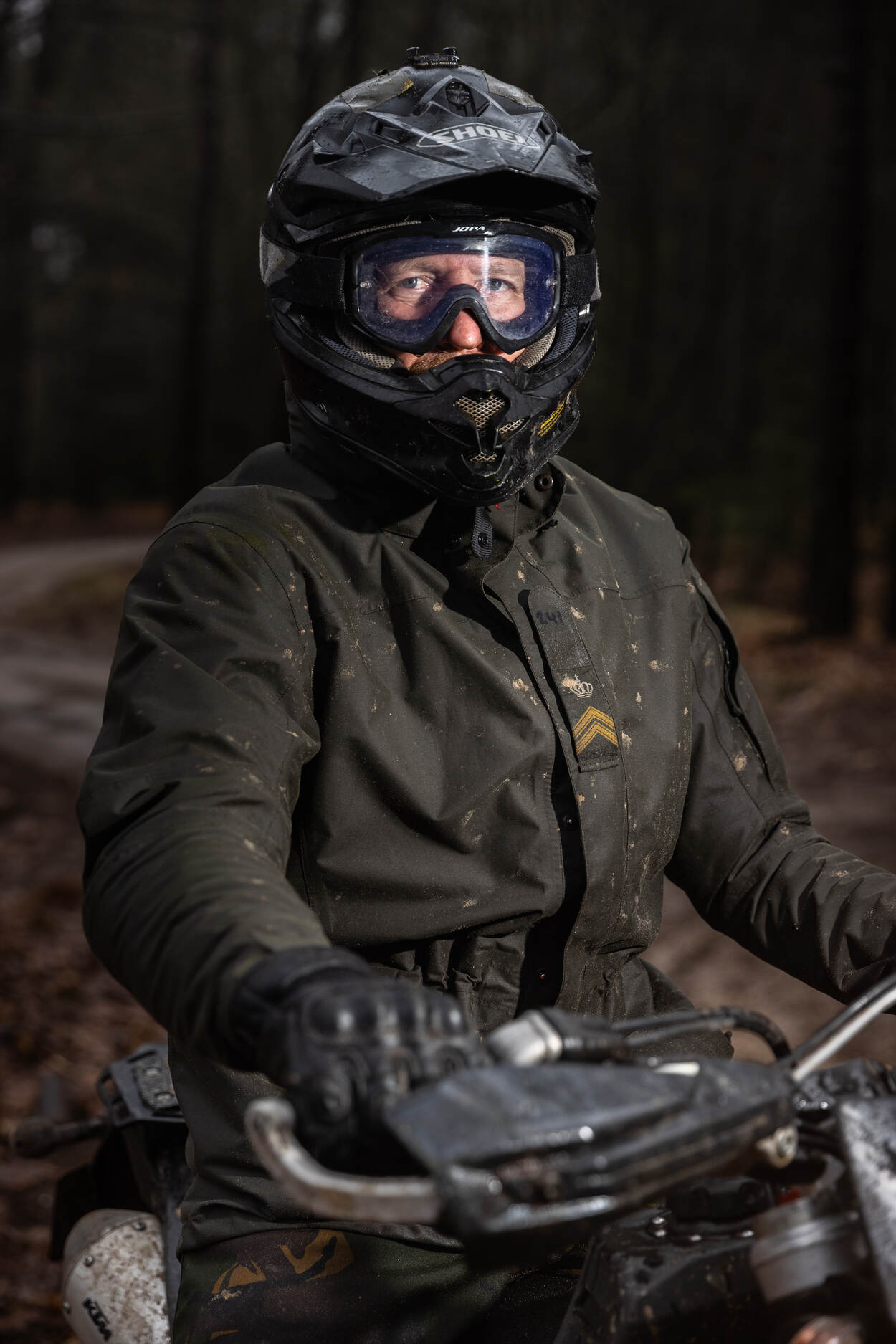 Maar hoe rijdt de nieuwe KTM? “Fantastisch, alsof je van een DAF naar een Ferrari gaat”, grijnst sergeant-majoor Sebastiaan, ook van 11 Bevo. “Er zit zoveel meer kracht in en hij rijdt veel makkelijker. Zo’n motor is een uitkomst wanneer ik tussen tien heli’s met honderd meter tussenruimte heen en weer naar groepen paxen moet pendelen. Radio in een rugtas en gaan. Dat kan met een MB, maar dit is zoveel sneller en makkelijker.” De extra trainingen zijn volgens Sebastiaan heel belangrijk voor de veiligheid. “Je leert pas echt rijden na je basisopleiding. Het Enduro Team brengt zoveel ervaring mee, daar leer je hier veel van.” De bril gaat weer op en hij stuift weg.