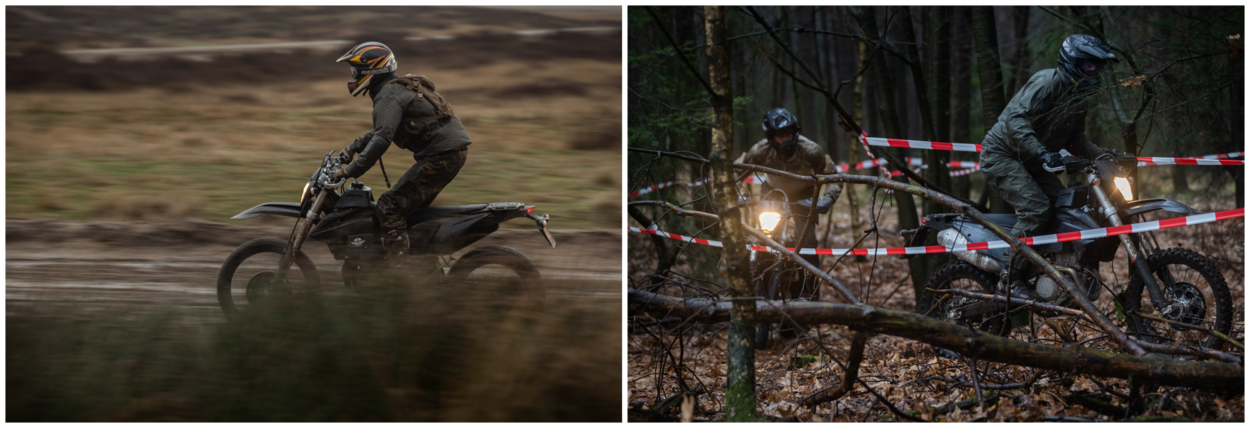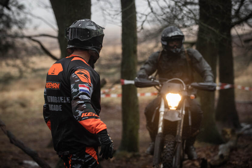 Vandaag doen naast vier 'luchtmobielers' ook drie man van het KCT en drie marechaussees mee. De commando’s zitten in een onderzoekstraject waarbij ze kijken hoe en welke motor in hun optreden past, terwijl de KMar regelmatig militaire oefenterreinen opgaat om ‘wildcrossers’ in de kraag te grijpen.