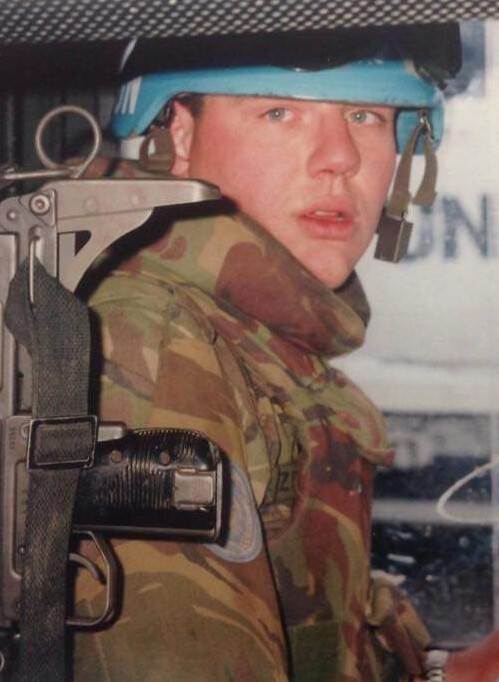 “Met de A-cie zaten we in Busovača, een dorpje van ongeveer 15.000 inwoners. Op een ochtend begon het achter ons in de bergen te rommelen. Ik liep als wachtcommandant buiten, en hoorde ineens een indringende fluittoon. Die mortiergranaat klapte precies op een van de torens naast het busstation vlakbij. De luchtdrukverplaatsing was zo groot dat ik tegen de Hesco’s werd aangesmeten. Gelukkig kreeg een maatje het voor elkaar om me snel de bunker in te trekken voordat de shit echt losbarstte. Een paar tellen later sloegen overal mortieren in.”