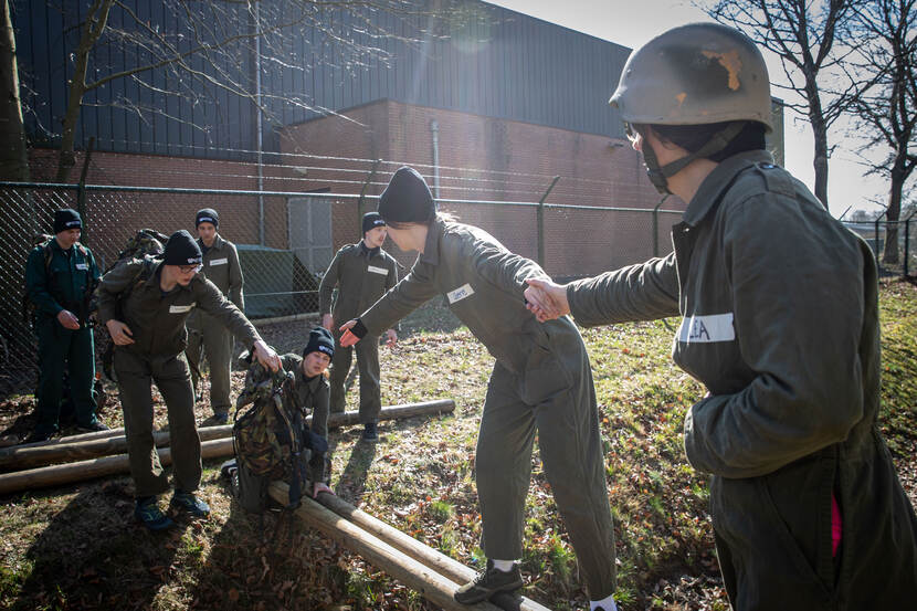 Want naast de militaire onderdelen zoals kaartkompaslessen, fysieke prikkels en teamopdrachten zitten er verschillende bewustwordingsmomenten in het programma. Geen Kamp van Koningsbrugge-taferelen, dus. Toch is de missie wel een ‘snelkookpan’: “We laten de jongeren kennis maken met Defensie en coachen hen, samen met de militaire collega’s. Het zorgt ervoor dat ze even stilstaan bij zichzelf: wie ben ik en wat wil ik? Het zijn lessen waar ze de rest van hun leven iets aan hebben. We creëren een veilige omgeving waarin de deelnemers zich kunnen ontwikkelen, leren en dingen doen die ze nog nooit hebben gedaan.”