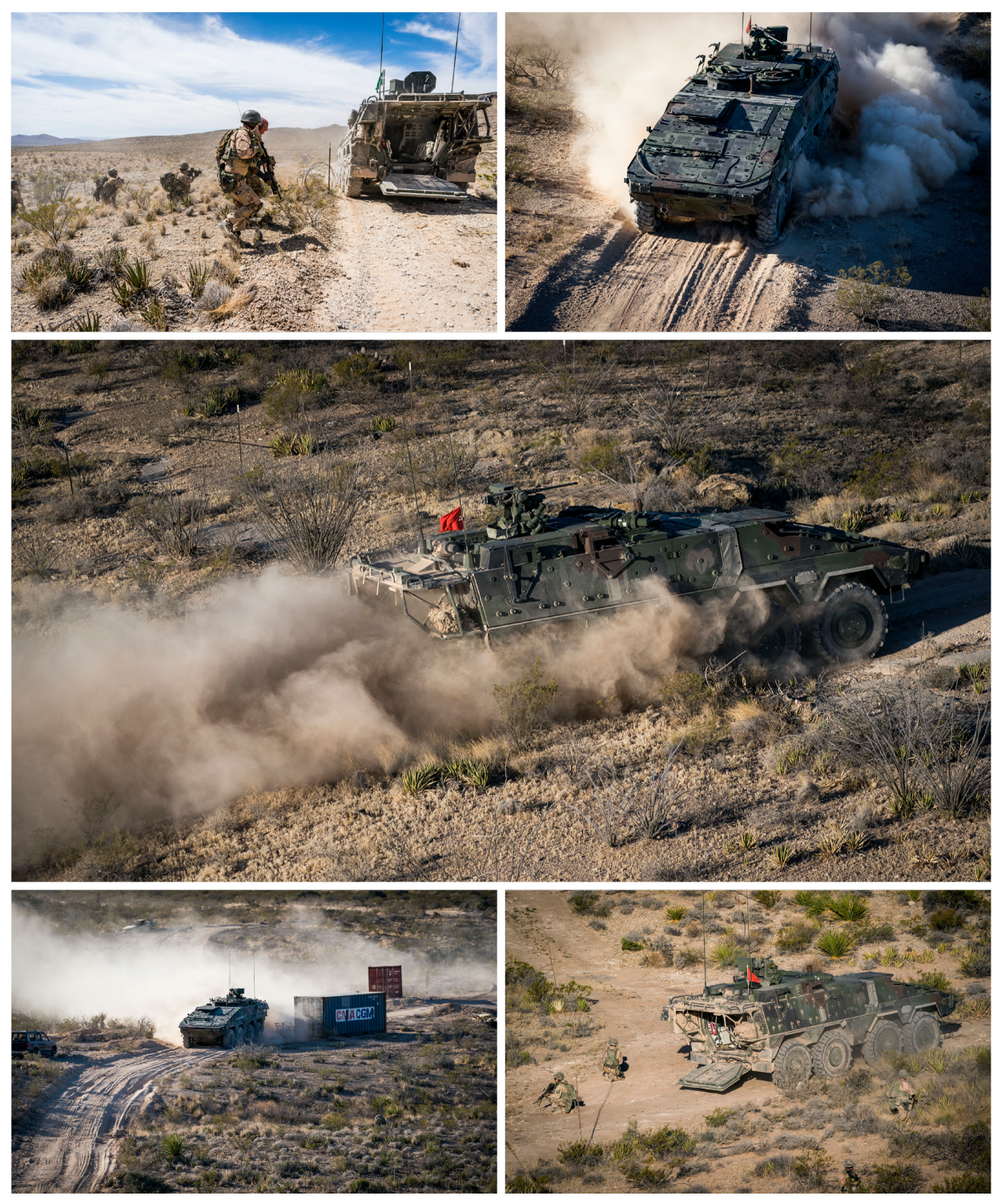 Terwijl de OH-6 helikopter over de hoofden scheert, melden twee van de vier Boxers-genie met een enorme stofwolk achter zich op de afspraak. De pantserwielvoertuigen zijn met nog twee Mercedes-Benzen, een ziekenauto en tien containers per boot de Atlantische Oceaan over gestoken.