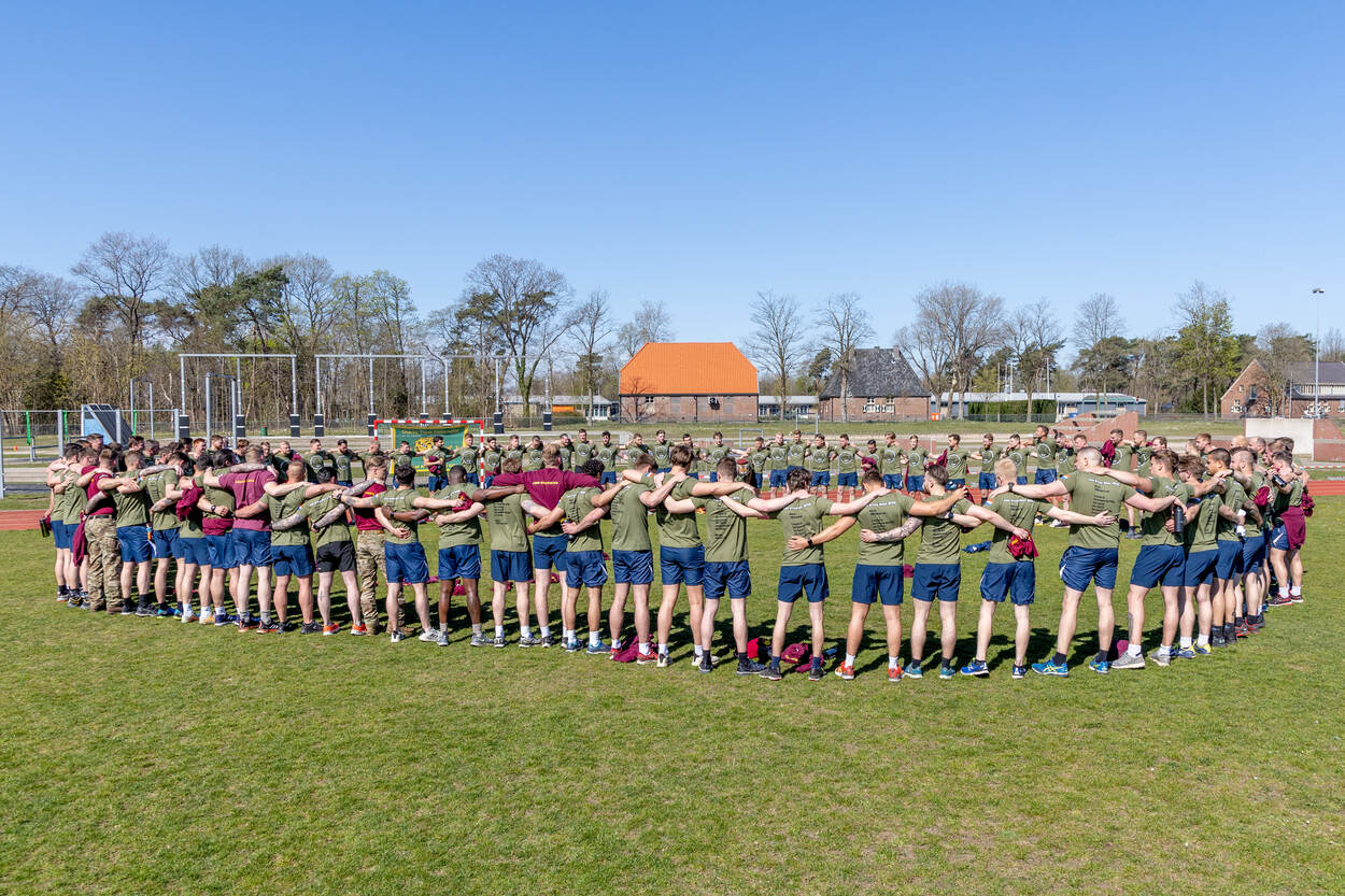 “Je ziet hoe deze WOD en herdenking de mannen aangrijpt”, zegt majoor Ralph, in 2007 pelotonscommandant van Cor. Die emotie is zichtbaar als de hele compagnie na de sportprestatie daarvoor staat opgesteld op de ‘appelplaats Cor Strik’, bij het onderkomen van de C-cie voor de herdenking.