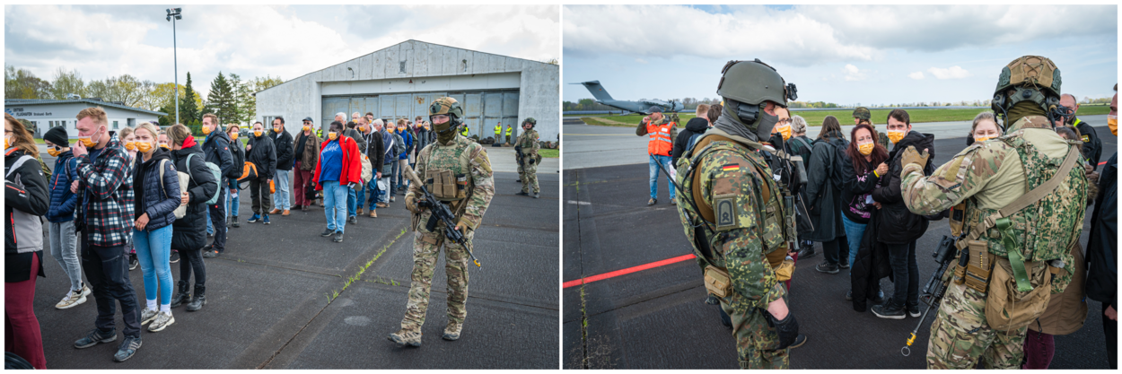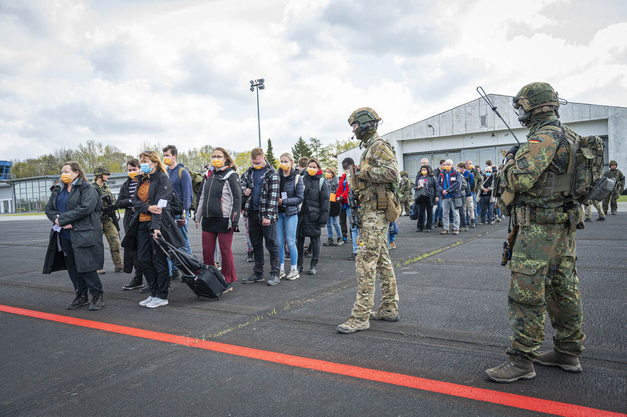 Het scenario doet denken aan Kabul, vorig jaar zomer. 2.500 mensen verlieten met Nederlandse vliegtuigen de luchthaven nadat de Taliban de hoofdstad innam. De Duitse Bundeswehr vloog binnen enkele dagen meer dan 5.000 mensen uit. “In Libië hebben we soortgelijke ervaringen, maar door alle aandacht rondom Kabul zijn we anders naar dit soort evacuaties gaan kijken”, vertelt kapitein Jan Volkman van de DSK. “Bijna al mijn Duitse collega’s uit deze oefening waren daarbij aanwezig. De lessen die we hebben meegenomen zijn verwerkt in het scenario. Zoals snel kunnen schakelen van een veilige naar een onveilige omgeving.”