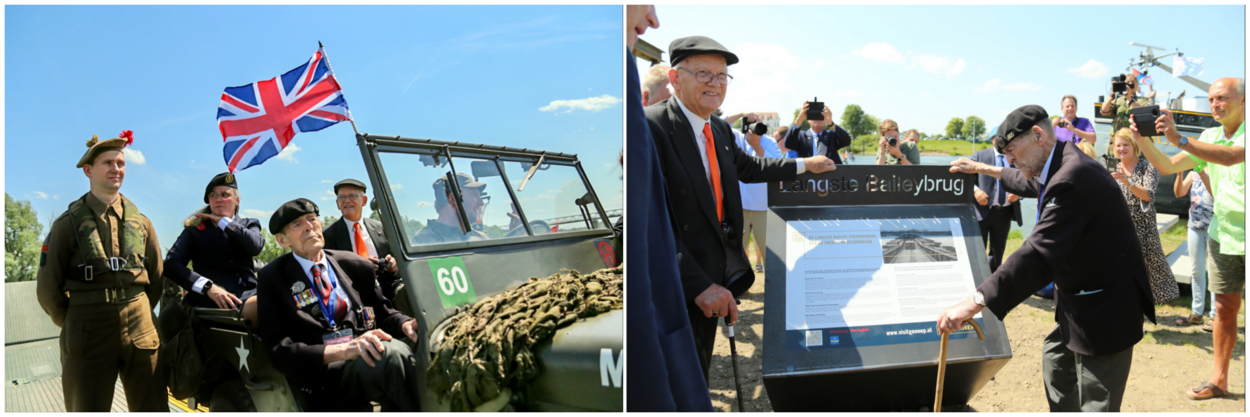 Ze sieren sinds 11 mei de oevers van de Maas bij het Brabantse Oeffelt en het Limburgse Gennep. Twee bijzondere monumenten die zijn samengesteld uit panelen van een baileybrug. De gedenktekens vormen een eerbetoon aan de Britse major Edwin Hunt MVO (Member Victorian-Order) en de Nederlandse reserve-luitenant ir. Constant Lambrechtsen van Ritthem.