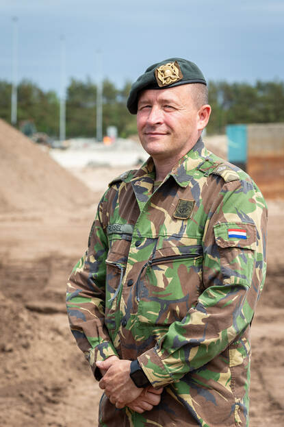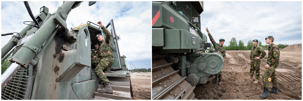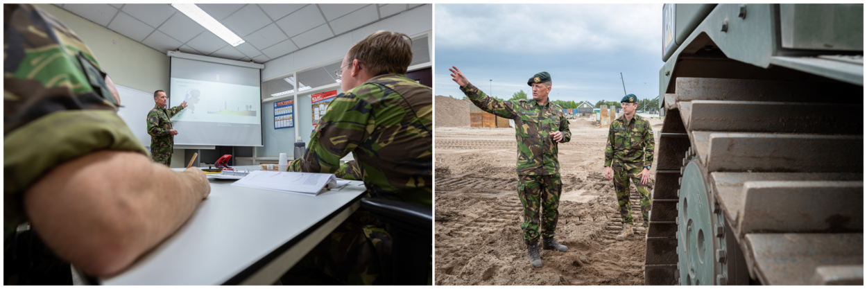 Sergeant-majoor Andreas Rossel, instructeur Pontonniers- en Pioniersschool: “Matthijs, nu nog praktijkleermeester maar straks instructeur, zetten we in vanwege zijn vele praktijkkennis. In het dagelijks leven werkt hij bij een groot grondverzetbedrijf en hij heeft ontzettend veel ervaring. De nood is hoog. Het is nou niet zo dat ik eventjes een blik met goede instructeurs kan opentrekken. Matthijs vult in wat wij op dit moment tekort komen; machinebesturing, het werken met GPS, ervaring op de machines zelf. Het is inmiddels de tweede keer dat hij tijdens zijn verlof bij ons inspringt.”