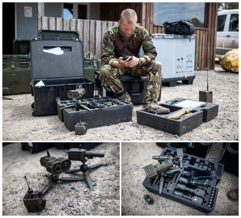 De kloeke radar gaat niet bij iedere actie mee. “We hebben nu zoveel spullen dat je wel opdrachtgericht moet selecteren, anders kan er niemand meer mee in de Fennek”, schetst ‘echo’ wachtmeester der eerste klasse Martin, specialist onbemande grondsensoren (OGS). Het Brigade Verkenningseskadron beschikt over een keur aan inzetbare middelen om de vijand ‘hoorbaar’ waar te nemen. Bewegingssensoren die je zo ergens verbergt om een terrein te bewaken en die je op afstand kunt afluisteren. Tot op zo’n tien kilometer.”