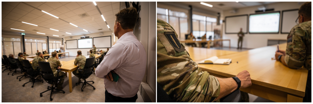“In het verleden had je tegenstander een geweer. Nu zijn er steeds meer nieuwe en andere dreigingen voor onze operaties. Denk aan het cyberdomein, vandaar dat ook het Defensie Cyber Commando meedoet”, zegt leider der oefening, kapitein Sander. Ook politieke en of economische factoren spelen steeds meer een rol.