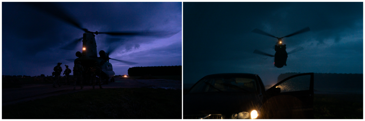 De voorbereiding (Command Post Exercise) neemt sowieso al een week in beslag. Er zijn drie scenario’s: de onderschepping van een voertuig met een verdachte, een aanval op een fort en dus de bevrijding van de gijzelaar in Rotterdam. Daar worden de bewoners van omliggende flats op de woensdagavond opgeschrikt door de twee helikopters - Chinook en Cougar - en fastropende commando’s die op het dak neerdalen. “We zijn gewaarschuwd hoor, zegt een anti-kraakbewoner van de St. Antonius. “We zijn het ook wel gewend, er zijn hier regelmatig oefeningen van de brandweer en Defensie.”