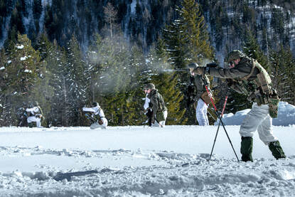 Stilte, afgezien van gekraak van gevechtslaarzen op bevroren bosgrond. Een sereniteit doorbroken door een aantal schoten en een pelotonscommandant die schalt: