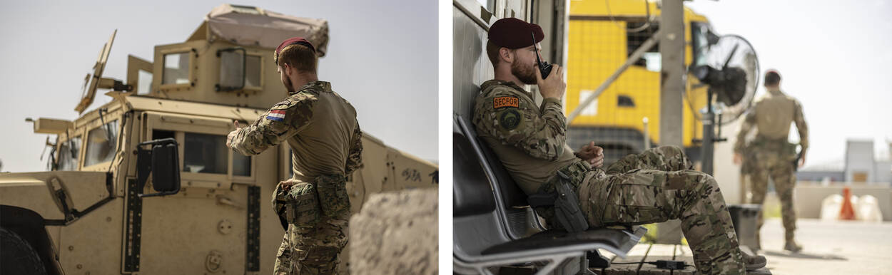 Terwijl de commandant Force Protection (FP) naar het Tactical Operation Centre (TOC) loopt, vertelt hij: “Buitenlandse partners kunnen hun werk pas goed doen als wij onze beveiliging op orde hebben. Daardoor wordt onze aanwezigheid op prijs gesteld. En daarnaast ben je natuurlijk van elkaar afhankelijk; onze FP is bijvoorbeeld verweven in een Amerikaans bataljon. Ons voordeel is dat we ons makkelijk bewegen in een internationale gemeenschap. Wat bij deze missie helpt is dat de taal geen barrière is omdat alle partners vrij goed Engels spreken.”