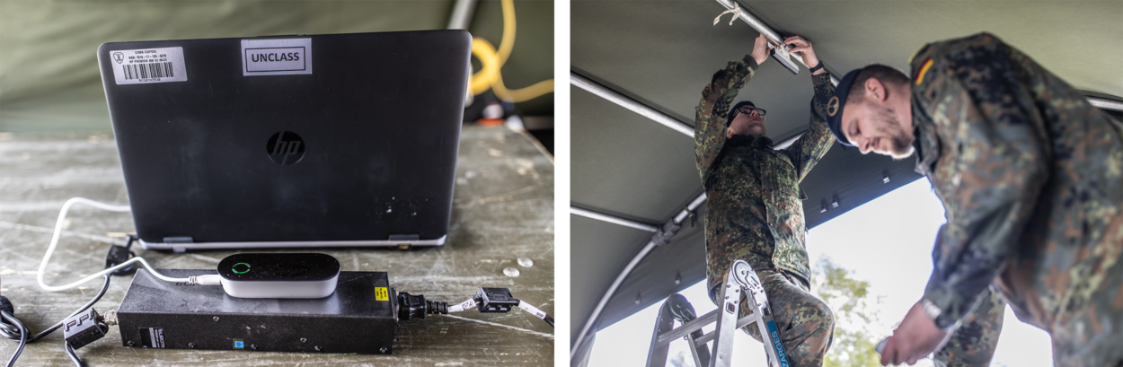 Wie een commandopost inricht weet: haast is geboden. Het hart van de operatie moet zo snel mogelijk staan. Een tent opzetten is misschien nog wel vlot te realiseren, het opzetten van veilige verbindingen kost zeker meer tijd. Met alle bekabeling neemt de opbouw van een grote post voor tientallen militairen zomaar vele dagen in beslag. Komt nog eens bij dat de collega’s van de Communicatie- en Informatiesystemen (CIS) schaarse specialisten zijn. Hoe langer zij bezig zijn met de draden, hoe minder tijd ze hebben voor andere dringende verbindingsproblemen.