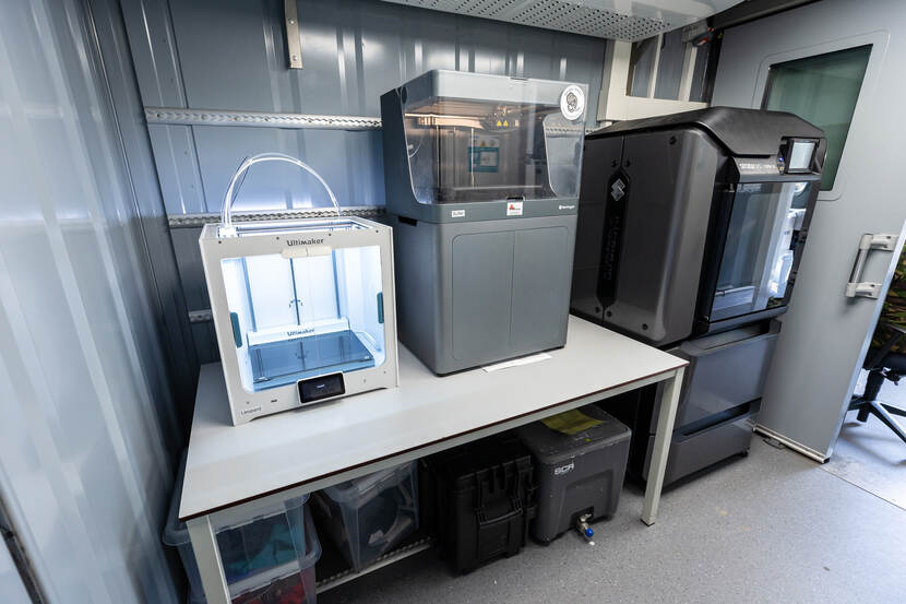 Hersteleenheden bij 13 Lichte, 11 Luchtmobiele en 43 Gemechaniseerde Brigade maken al maximaal gebruik van de mogelijkheden die Additive Manufacturing biedt. “En ze hebben de container ook al helemaal omarmd.” In september gaat het operationele printlab daarom voor het eerst mee op oefening tijdens de Field Training Exercise Furious Hunter van 13 Lichte Brigade in het Duitse Klietz. En daarna? “Kans bestaat dat-ie volgend jaar in Litouwen staat.”