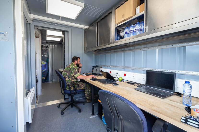 De groene AM-container bestaat uit twee ruimten. De ene zijde is het werkgedeelte, waar twee mensen kunnen tekenen, ontwerpen en overleggen. Aan de andere zijde prijkt de printruimte: hier kan de eenheid, afhankelijk van de missie of oefening, de gewenste printer installeren en gebruiken. De ruimten voldoen aan alle eisen die 3D-printen vereist: “De luchtvochtigheid is optimaal en de temperatuur is constant te controleren. Zelfs in de heetste gebieden is het in de container goed uit te houden”, aldus Fokkink.