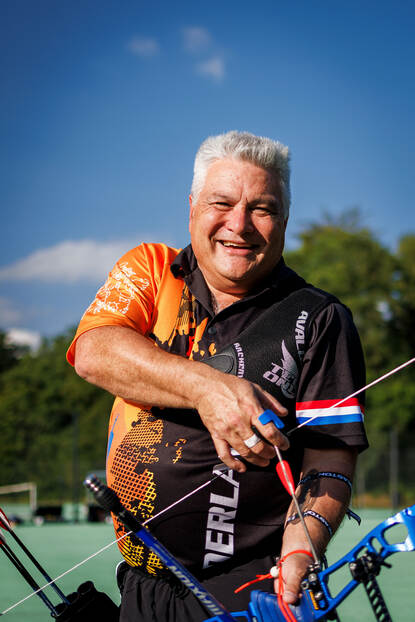 "Als individu met boogschieten, en rolstoelbasketbal omdat ik ook in een team wilde sporten. Ik zie de complete selectie als een compagnie, en de basketballers als mijn peloton. Moeilijk hoor trouwens, dat basketballen. In een rolstoel ben ik echt een stijve hark. Maar… ik ben allang blij dat ik de bal inmiddels dribbelend mee kan nemen. Wat overigens extra leuk is, is dat we samen met Duitsland 1 team vormen."