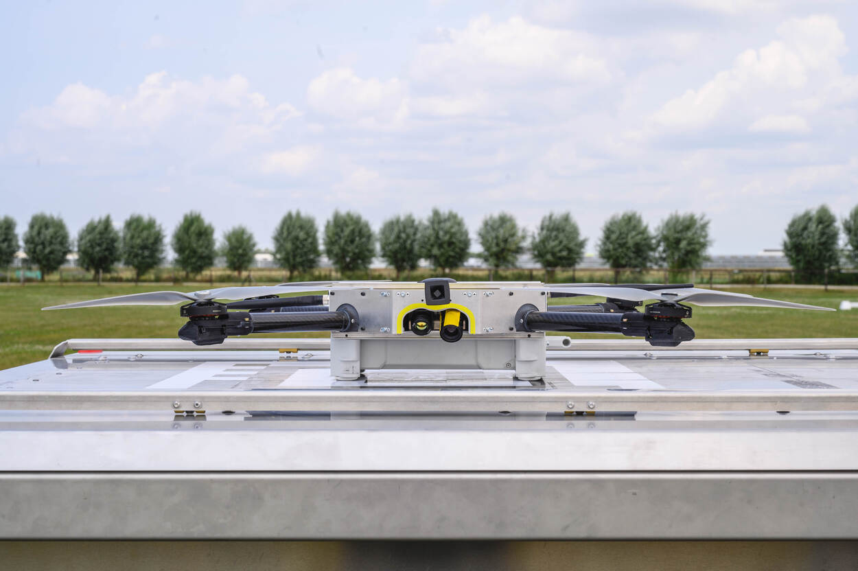 Prachtig, maar hoe klein ook: het blijft een vliegmachine met een accu. Eindeloos speuren is geen optie. Een ingenieus accusysteem biedt uitkomst. “Zodra de accu bijna leeg is, berekent de computer de snelste route terug”, vertelt Hädicke. Elke drone heeft daarbij een eigen trigger: de één keert terug bij 10 procent batterij, de ander bij bijvoorbeeld 25. Zo voorkom je dat de volledige zwerm opeens een return to base maakt.