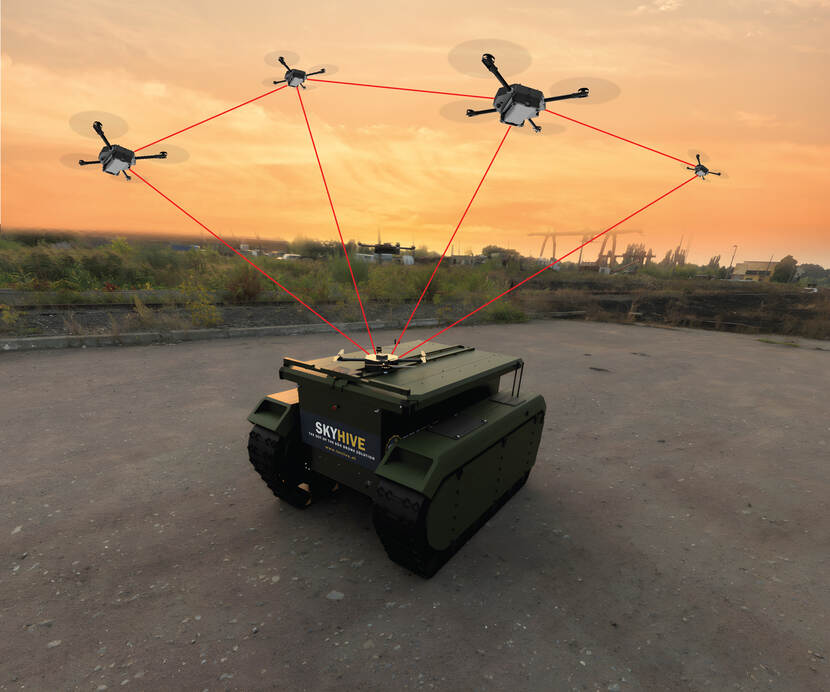 Het vernuftige systeem bestaat uit een zwerm drones, die als groep autonoom opstijgt, landt, surveilleert en zelf de accu wisselt vanaf 1launch and recovery station en de zoektaken onderling verdeelt. Wat begon als winnend idee bij de Defensie Innovatie Competitie is uitgegroeid tot een intelligent zoeksysteem dat de militair kan bijstaan in planning en uitvoering van de operatie.