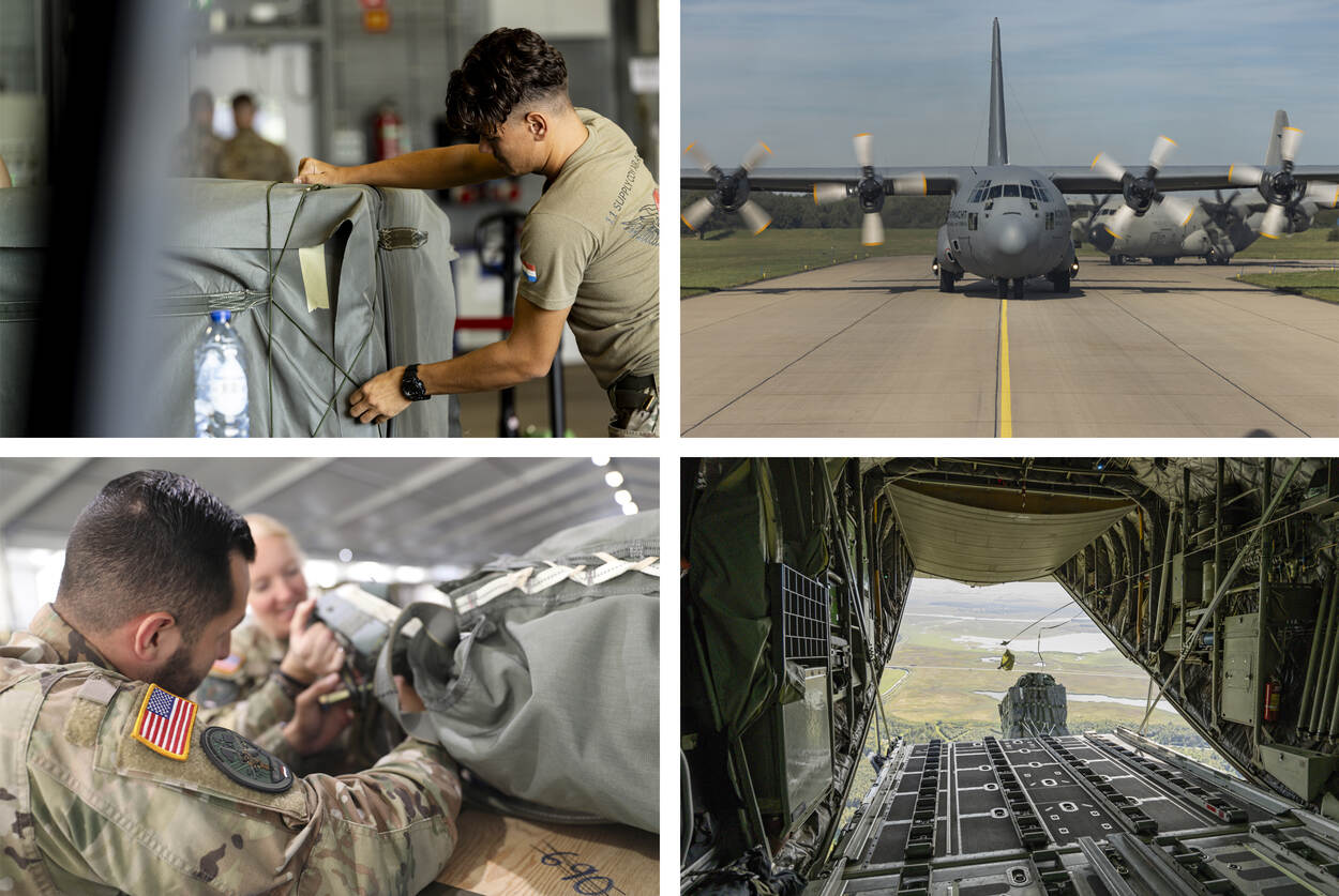 De eerste week van Falcon Leap staat traditiegetrouw in het teken van zowel Tactical Air Landing Operations als CDS. Niet te verwarren met de belangrijkste militair adviseur van Nederlands politieke leiders, want hier gaat het om het Container Delivery System. Kort gezegd: hoe drop je snel en effectief grote voorraden cargo op de juiste plek? Dat vergt niet alleen maximale focus tijdens het ‘verzendgereedmaken’ van spullen, ook de samenwerking met de transportvliegtuigen van 336 Squadron van het Air Mobility Command van het CLSK wordt naar een hoger niveau getild. “336, maar uiteraard ook de vliegende crews van de andere landen, zijn essentieel voor wat we tijdens Falcon Leap in multinationaal verband uitvoeren”, aldus Coppers.