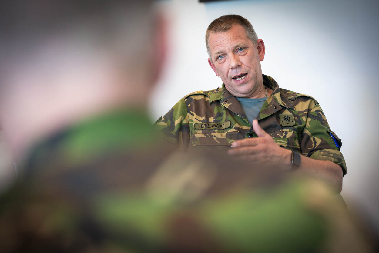 “Rusland is een oorlog gestart. Er is dreiging en we moeten iets doen met hoofdtaak 1 (beschermen van het eigen grondgebied en dat van bondgenoten, red.). Dat kan alleen als je eenheden gevuld zijn.” Landmachtadjudant Bielander zit nog maar relatief kort op z’n post als bewaker van de positie van het onderofficierskorps. Lang genoeg echter om de vinger op de zere plek te leggen. Op de Kromhoutkazerne, hoofdkwartier van de Koninklijke Landmacht, verklaart de ervaren onderofficier: “Tegelijkertijd weten we dat we er de afgelopen jaren alles aan hebben gedaan, met goede initiatieven zoals Falcon Legion en werven in de regio, maar dat het niet gelukt is alle eenheden te vullen. De boodschap die écht dient te landen, is dat we geen keus hebben. Vullen is noodzakelijk om voor continuïteit te kunnen zorgen als we daadwerkelijk ons land moeten beschermen.”