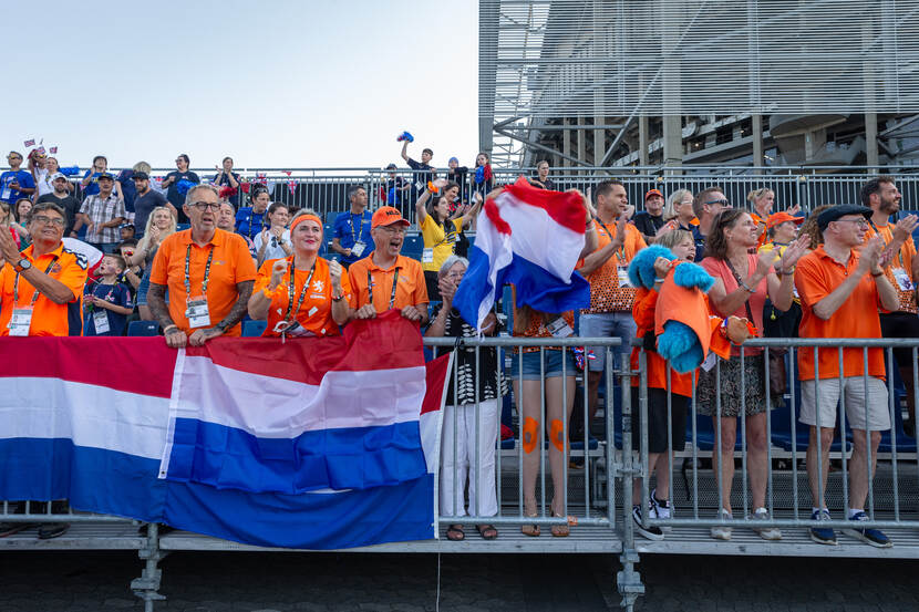 In alle hectiek van de Merkur Spiel-Arena werken de atleten zich in het zweet. Links en rechts doen ze in opperste concentratie hun warming-up. Overal wedstrijden, overal toeschouwers, overal een glimlach. Meedoen is belangrijker dan winnen. Oranje domineert. Gestoken in shirts van die kleur steken vrienden en familie van de atleten hun dierbare een hart onder de riem. Zelden zijn atleten zó enthousiast aangemoedigd. Een feest der herkenning zijn de Games eveneens. Oude bekenden van eerdere edities vallen elkaar uitbundig in de armen.
