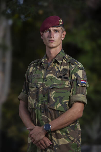 De compagnie is een jonge eenheid, vertelt eerste Luitenant Gijsbert Hoek (24), pelotonscommandant van het eerste peloton van 11 Alfa Koningscompagnie. “De meesten zijn het afgelopen jaar rechtstreeks uit de opleiding binnengekomen.” Hoek zelf is ook relatief nieuw bij de compagnie, evenals het gros van de andere kaderleden. “Zo’n anderhalf jaar zit ik hier nu bij. Dit is voor ons als eenheid onze eerste langere periode van huis.” Begin juli is de eenheid op het eiland gekomen. “Eerst reisde het voordetachement vooruit, om de overdracht te doen met de eenheid die er toen nog zat. Een week later kwam het hoofddetachement en begon de rotatiebeurt van 4 maanden.”