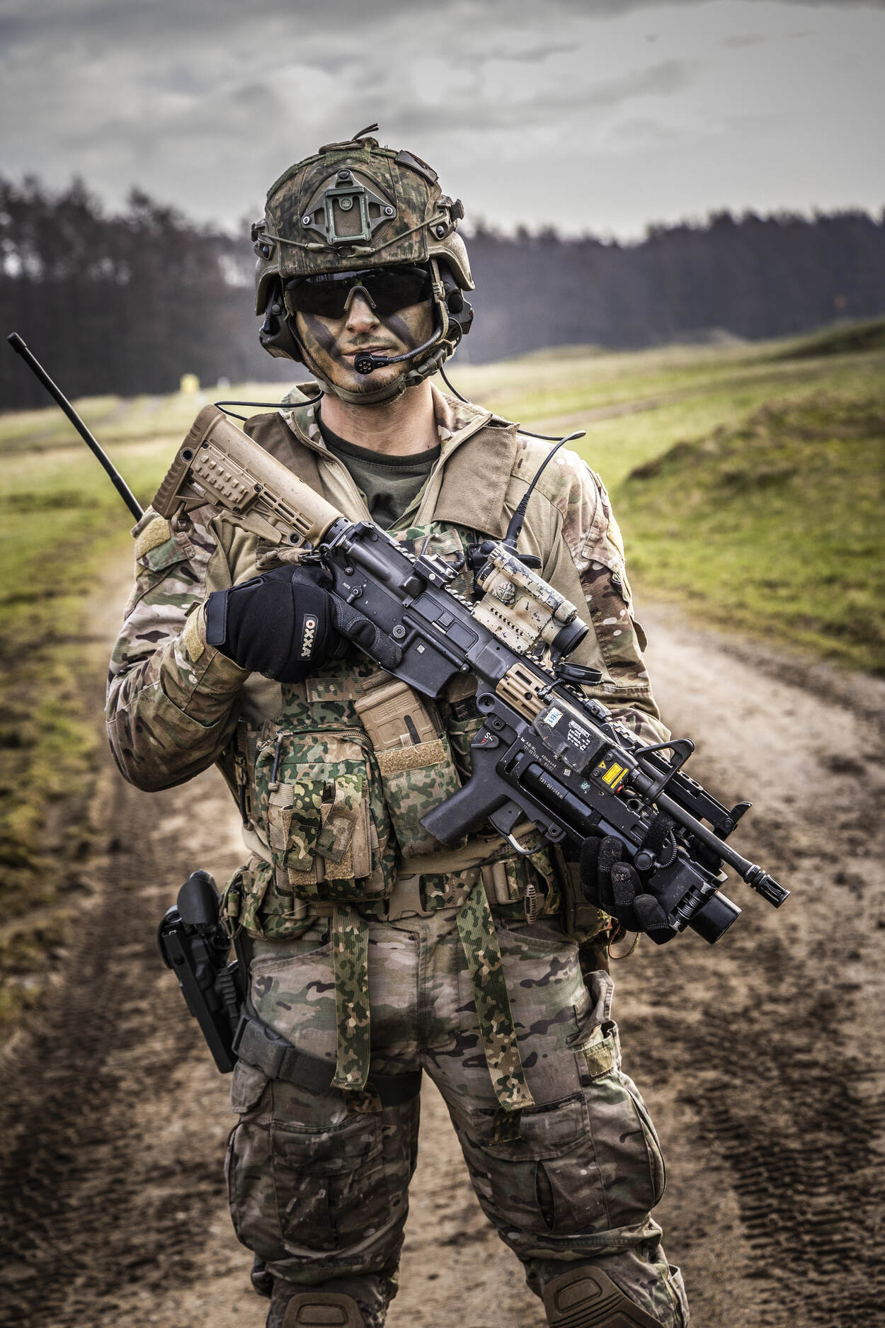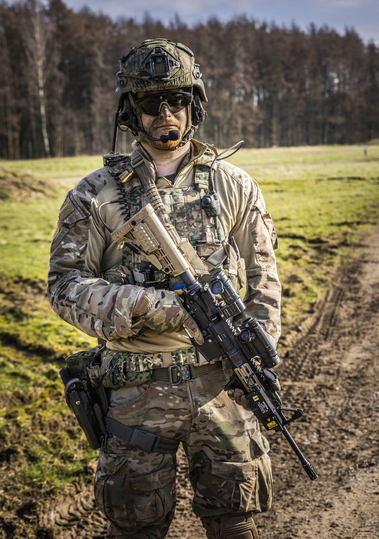 Een van de nieuwe oefeningen in het manoeuvre-optreden is het droneschieten. Voor waarnemend groepscommandant korporaal-1 Rob en zijn groep is het de eerste keer. Al zijn de vliegende vijanden hem niet vreemd. Al in 2021 in Irak kampten hij en z’n eenheid met een dreiging van onder andere suicide drones. “Dan merk je dat je vrij weinig tijd hebt om je persoonlijke wapen af te richten.”