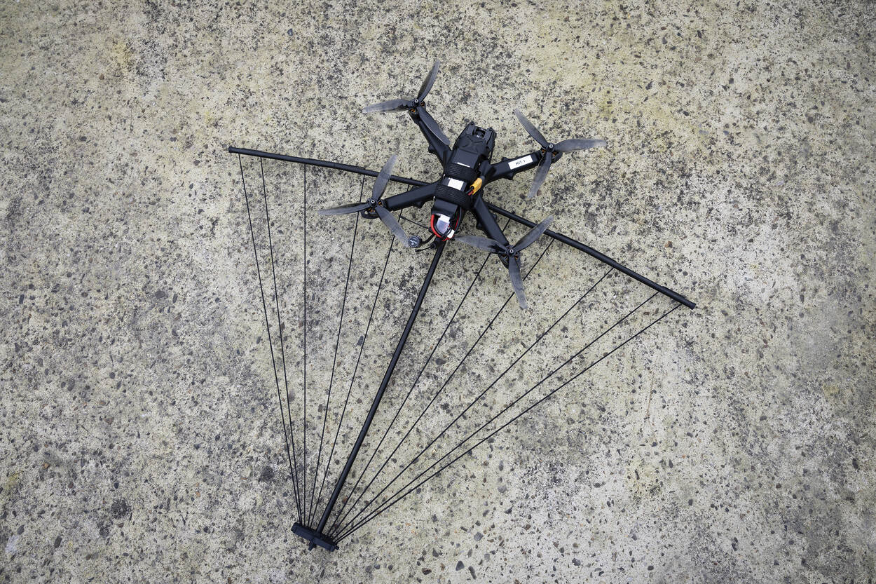 Na het ‘vangen’ van de vijandelijke drone, breekt het net af