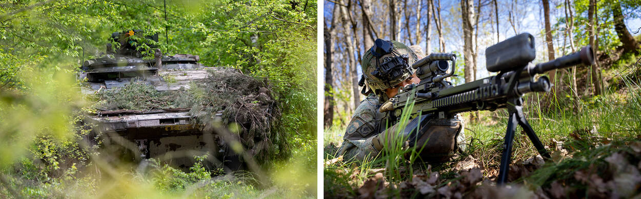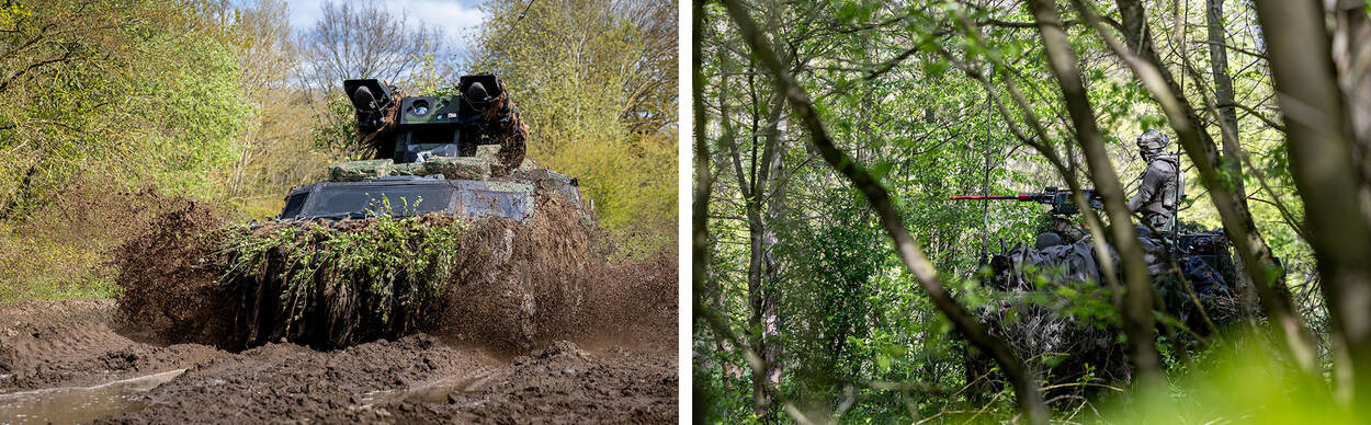 Het gebrul van aanstormende Leopards rommelt onheilspellend door het oefenterrein van het Duitse Güz Altmark. In de bosrand staan verhuld 3 Boxers opgesteld. De opdracht voor de militairen van 42 Pantserinfanteriebataljon is even helder als complex. “De vijand 10 uur vertragen tot de hoofdmacht binnenkomt om de counter in te zetten”, vertelt pelotonscommandant eerste luitenant Geert. “We zitten hier met een heel peloton op linie. 250 meter ten zuiden van ons zit de vijand. Aan ons de taak de brug voor ons dicht te houden.”