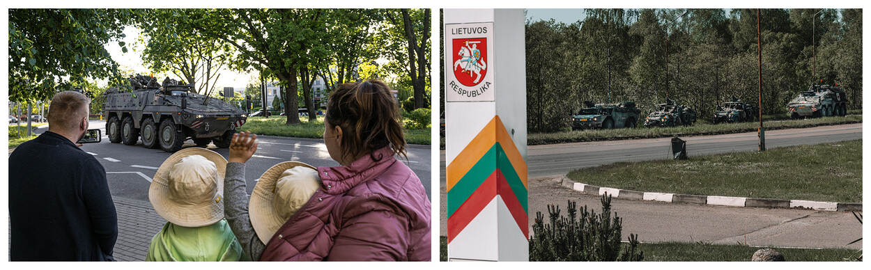 Het stadje en de laatste etappe vormen het symbolische zwaartepunt van de oefening. Het is de grensstrook tussen Litouwen en Polen, een strategisch kwetsbaar punt van tientallen kilometers dat de Baltische staten op land met de NAVO-bondgenoten verbindt. Die beweging doet iets met de mensen, merkt CSM adjudant Danny op. “Vooral bij jonge collega’s zonder uitzendervaring. Ik ben nog van de tijd van Bosnië en Afghanistan. De jongere generatie is opgegroeid met de dreiging uit het oosten. Natuurlijk gebeurt er tijdens de verplaatsing niets noemenswaardigs. Toch zit het bewustzijn erin. We gaan door het gebied met op links het Russische Kaliningrad en rechts Wit-Rusland.” Sil vindt het op zijn beurt vooral ‘ontzettend gaaf’: “Dit is het gebied waar het om gaat. We krijgen beeld bij het belangrijke punt.”
