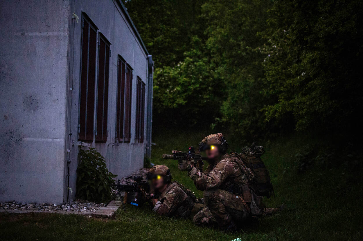 Ook de leerlingen nemen de programmawijziging voor lief. Geen gezeur. Focus! Dáár draait het om in de VCO, het (verplichte) vervolg op de Elementaire Commando Opleiding (ECO) waarin de rekruten de basisvaardigheden van het commandobestaan krijgen bijgebracht. Als onderdeel van het Direct Action-programma manoeuvreren de VCO’ers behoedzaam langs de gevels naar de voordeur van het eerste doel. Onder dekking van de invallende duisternis zuiveren ze de 3 huizen van vijand. “Konden jullie het goed volgen?”, vraagt sergeant Diego in de debriefing. Ja, luidt het antwoord. Diego heeft een tip. “Maak altijd tempo en bewaar de rust. Mannen, het is fijn werken met jullie.”