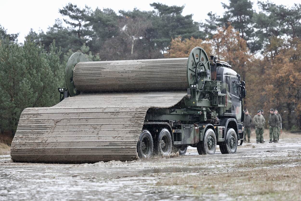 Genisten hebben sinds 20 november de beschikking over een nieuwe wegenmattenlegger. Hiermee kunnen de militaire bouwvakkers een onverhard oppervlak tijdelijk verharden. Denk hierbij aan drassige bodems en oevers. Het nieuwe systeem werd vorige maand in Vught overgedragen.