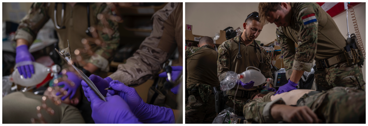 We hebben hier op een manier kunnen trainen die in Nederland vaak onmogelijk is. In de lucht een infuus aanbrengen bijvoorbeeld, waarbij dus automatisch ook de communicatie met de vliegende crews superbelangrijk is. Sta jij op het punt die naald in te brengen, is het wel prettig als de Chinook niet plotseling een scherpe bocht inzet. Op dat soort momenten komt alles bij elkaar en train je echt op het scherpst van de snede. Prachtig dat die kansen hier liggen. Daarnaast sparren we niet alleen met de Nederlanders, maar bijvoorbeeld ook met Spanjaarden en Amerikanen, inclusief hun kisten. Dat maakt het leuk en uitdagend tegelijk.”